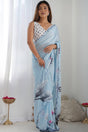 Blue Floral Printed Art Silk Saree