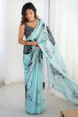 Blue Floral Printed Art Silk Saree