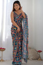 Blue Printed Art Silk Saree