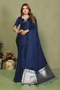 Blue Satin Woven Saree
