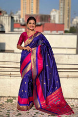 Elevate your wardrobe with our exquisite Saree a masterpiece crafted to add timeless elegance to your style. Made from Paithani Silk this saree offers a perfect mix of comfort and sophistication. Adorned with Woven it showcases intricate craftsmanship that speaks volumes of tradition and artistry. Perfect for Festive this saree is a versatile addition to your collection, ensuring you stand out effortlessly. Pair it with elegant Jewelry, for a glamorous look. Add Clutches or Potli Bags and complete the ensemble with Wedges & Heels , making it a perfect choice for any event. Make a statement and embrace the elegance of Saree today