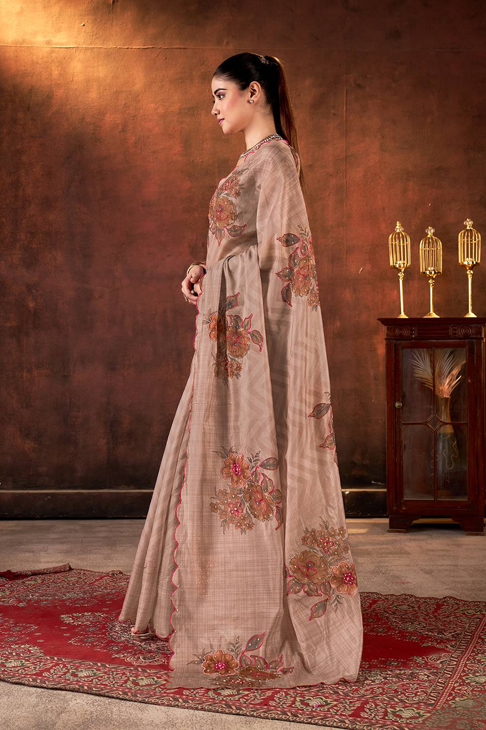 Elevate your wardrobe with our exquisite Saree a masterpiece crafted to add timeless elegance to your style. Made from Organza this saree offers a perfect mix of comfort and sophistication. Adorned with Floral Printed it showcases intricate craftsmanship that speaks volumes of tradition and artistry. Perfect for Party this saree is a versatile addition to your collection, ensuring you stand out effortlessly. Pair it with elegant Jewelry, for a glamorous look. Add Clutches or Potli Bags and complete the ensemble with Wedges & Heels , making it a perfect choice for any event. Make a statement and embrace the elegance of Saree today