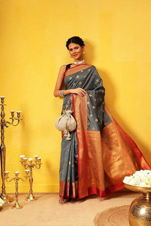Grey Zari Woven Kanjivaram Silk Saree