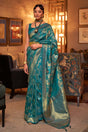The Kairos Teal Silk Woven Saree combines the opulent feel of silk with a sophisticated teal hue and intricate woven details, making it a stunning and versatile choice for any special occasion.