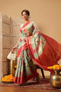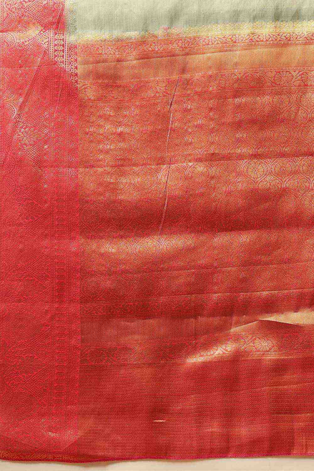 Olive Green Floral Printed Tissue Silk Saree