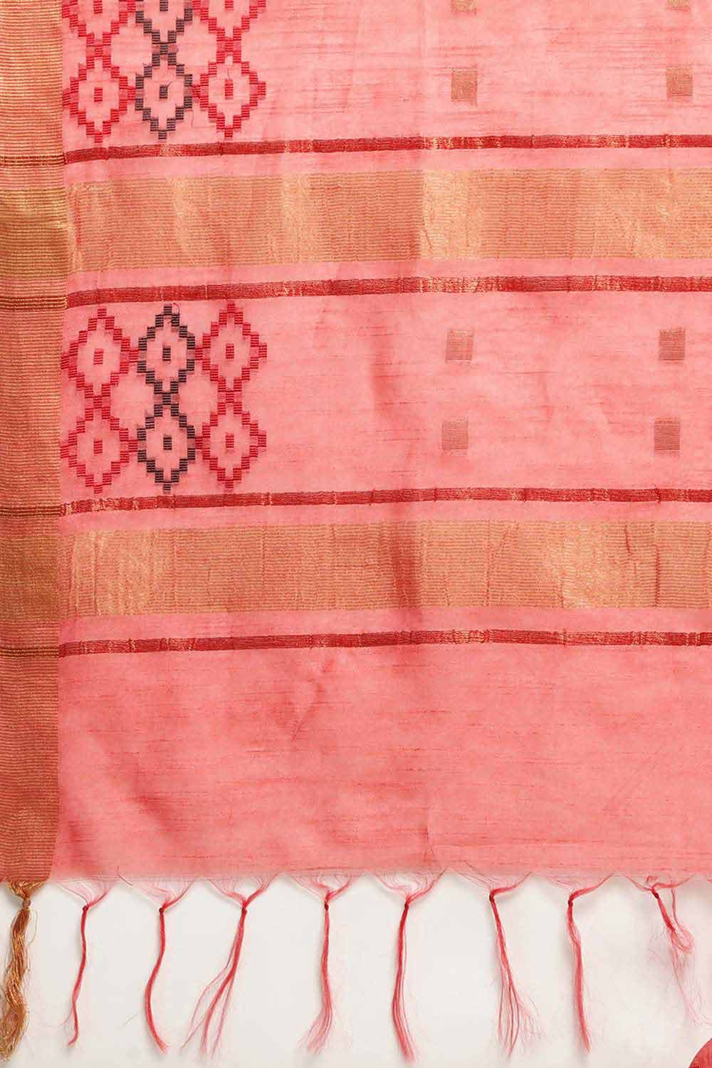 Peach Silk Blend Bhagalpuri Woven Design Saree