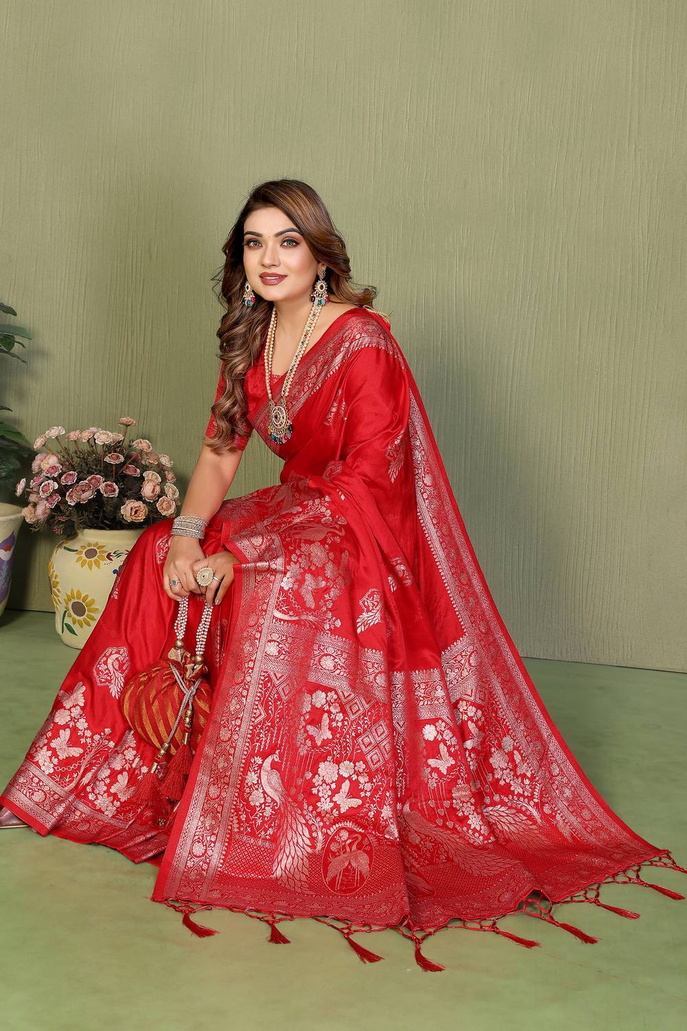 Red Woven Satin Saree
