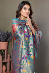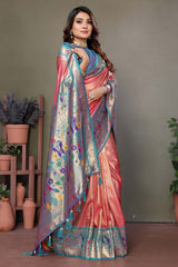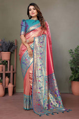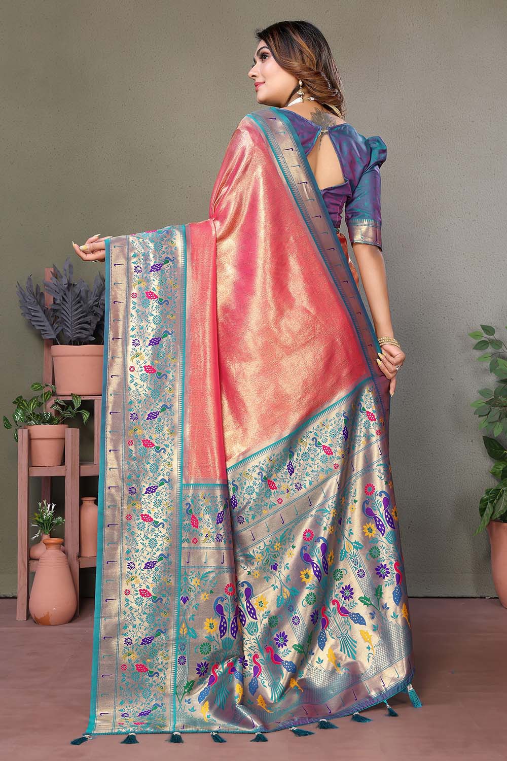 Elevate your wardrobe with our exquisite Saree, a masterpiece crafted to add timeless elegance to your style. Made from Tissue this saree offers a perfect mix of comfort and sophistication. Adorned with Woven it showcases intricate craftsmanship that speaks volumes of tradition and artistry. Perfect for Weddingwear,Festivewear this saree is a versatile addition to your collection, ensuring you stand out effortlessly. Pair it with elegant Jewelry, for a glamorous look. Add Clutches or Potli Bags and complete the ensemble with Wedges & Heels , making it a perfect choice for any event. Make a statement and embrace the elegance of Saree today