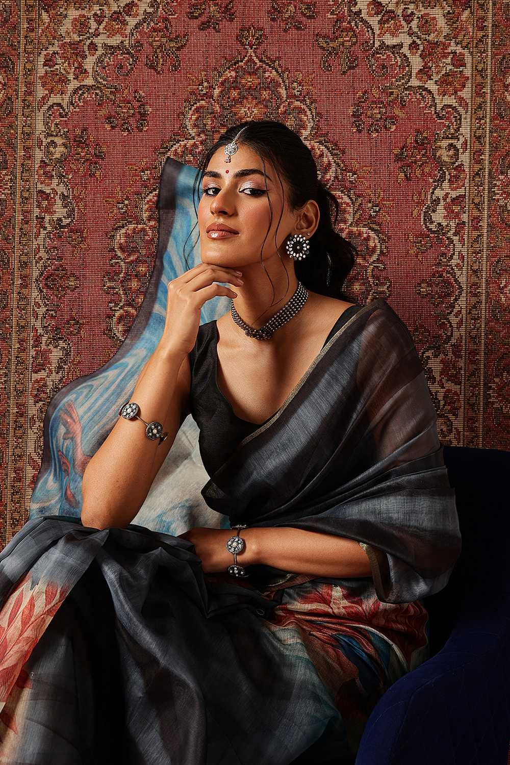 Elevate your wardrobe with our exquisite Saree a masterpiece crafted to add timeless elegance to your style. Made from Cotton Blend this saree offers a perfect mix of comfort and sophistication. Adorned with Floral Printed it showcases intricate craftsmanship that speaks volumes of tradition and artistry. Perfect for Festive,Party this saree is a versatile addition to your collection, ensuring you stand out effortlessly. Pair it with elegant Jewelry, for a glamorous look. Add Clutches or Potli Bags and complete the ensemble with Wedges & Heels , making it a perfect choice for any event. Make a statement and embrace the elegance of Saree today