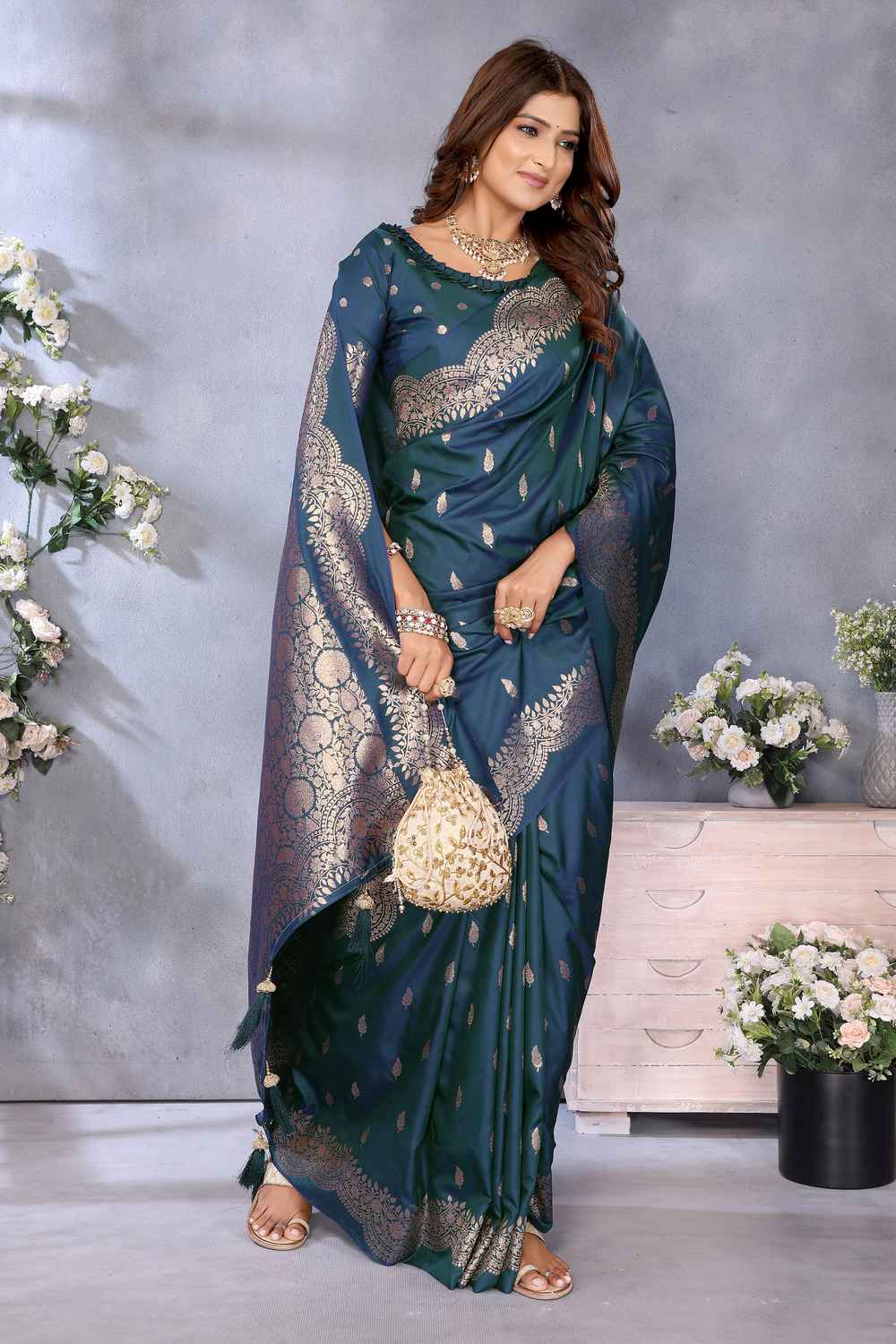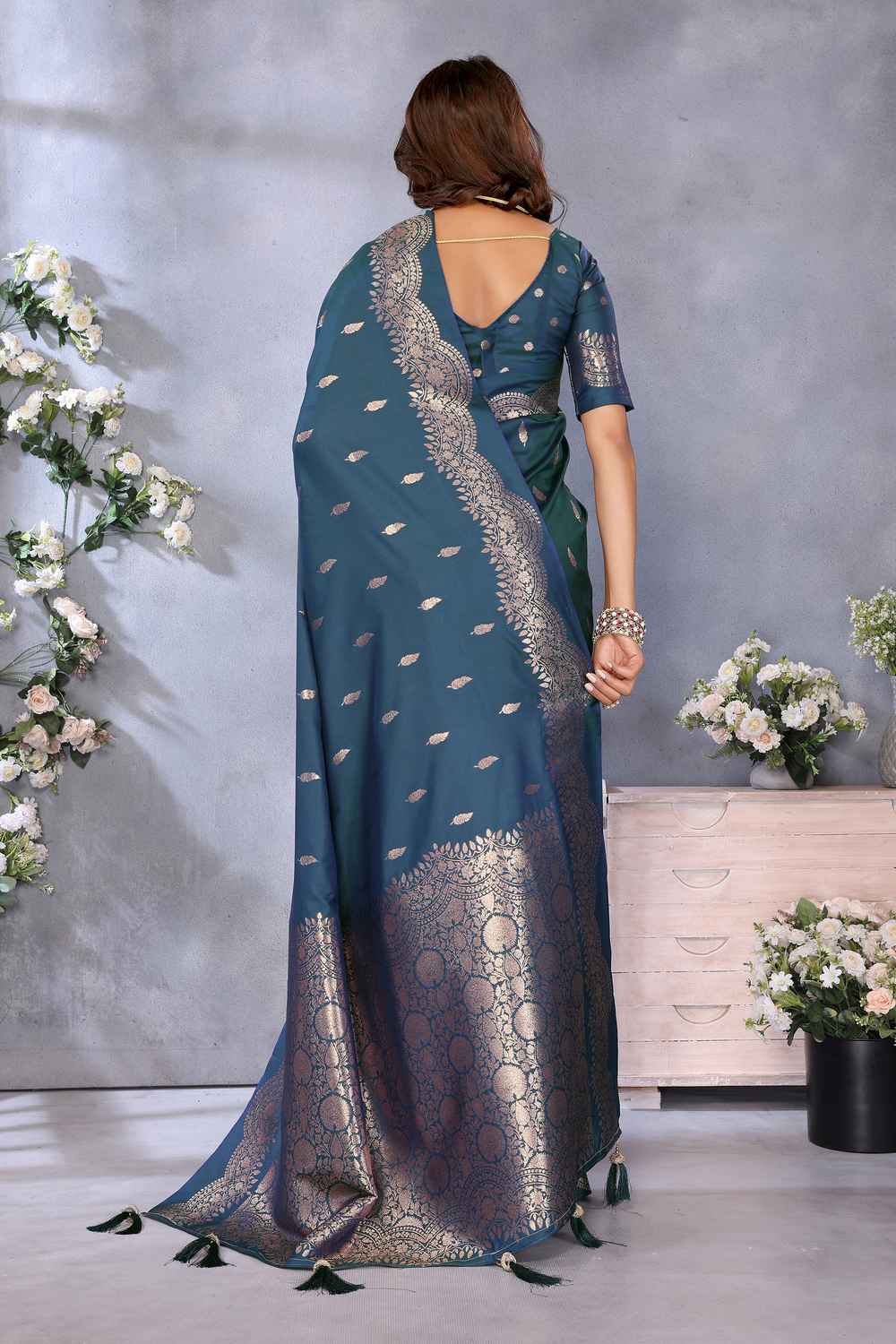 Turquoise Woven Banarasi Silk Saree