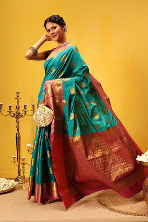 Turquoise Zari Woven Kanjivaram Silk Saree