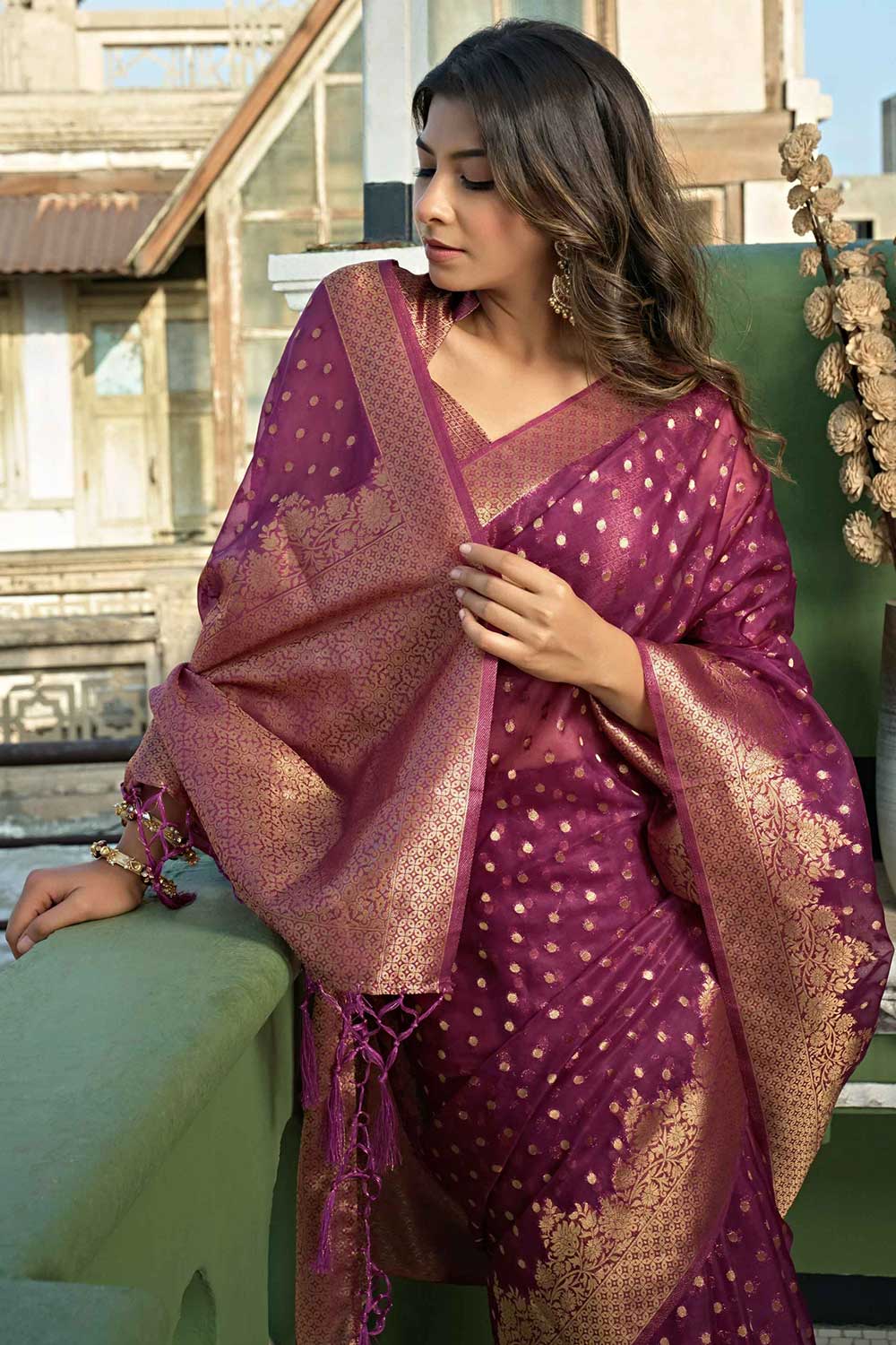 - Saree Color: Wine