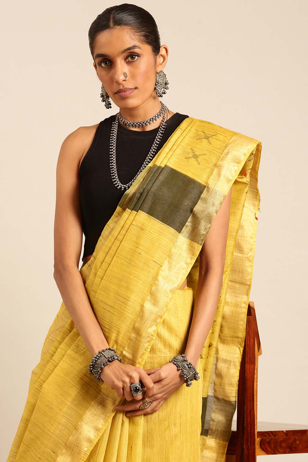 Yellow Silk Blend Woven Saree