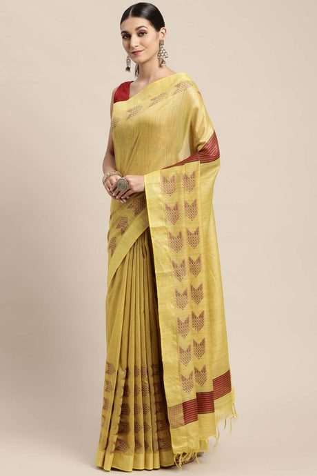 Yellow Silk Blend Bhagalpuri Woven Design Saree