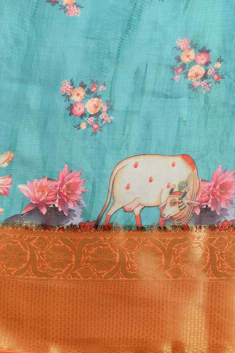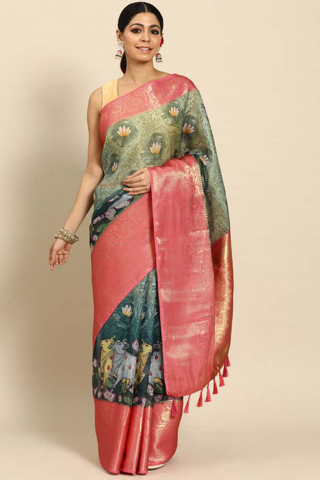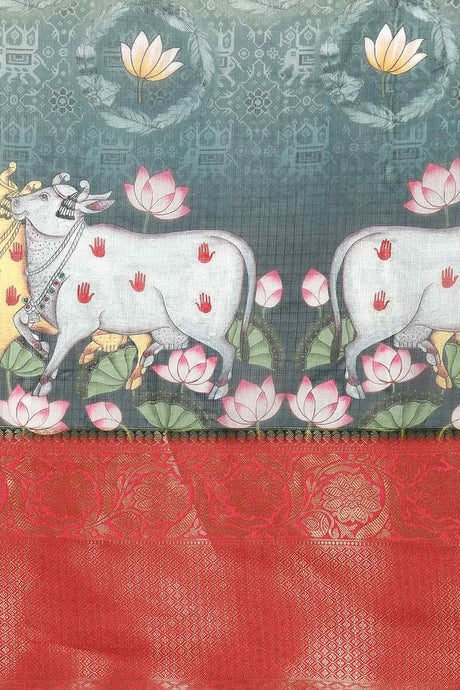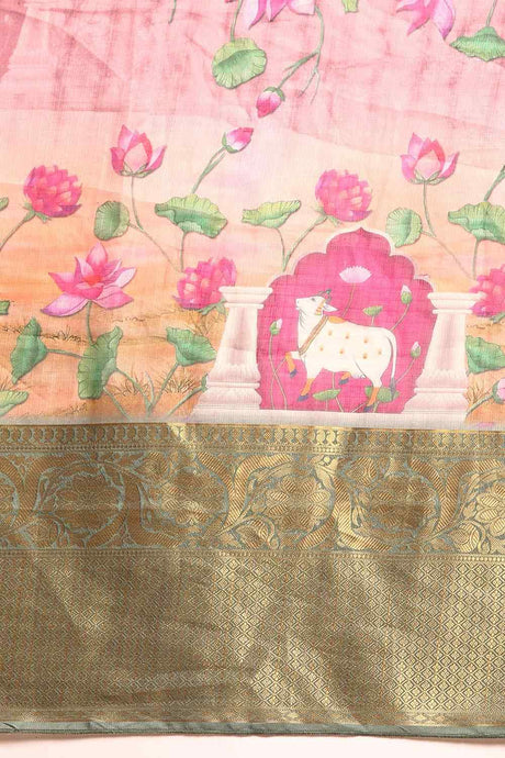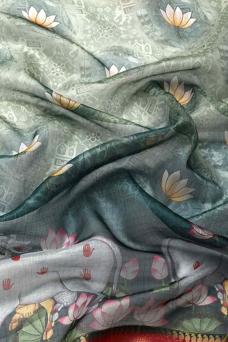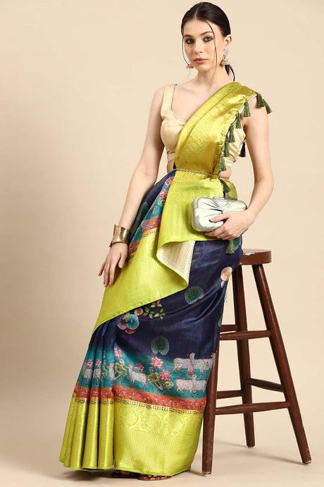 Sale price $84.00 USD Regular price $96.00Unit price /Unavailable Mahendi Muga Silk Animal Print Saree