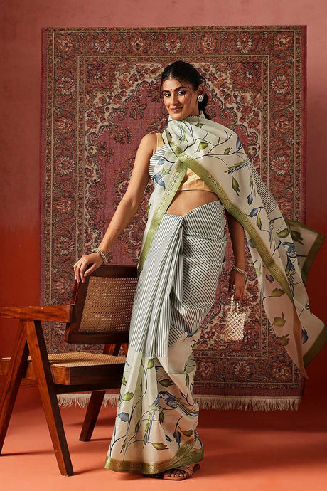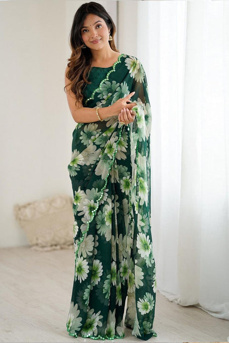 Green Floral Printed Georgette Saree