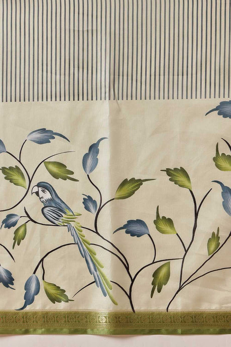 Olive Green Floral Printed Art Silk Saree