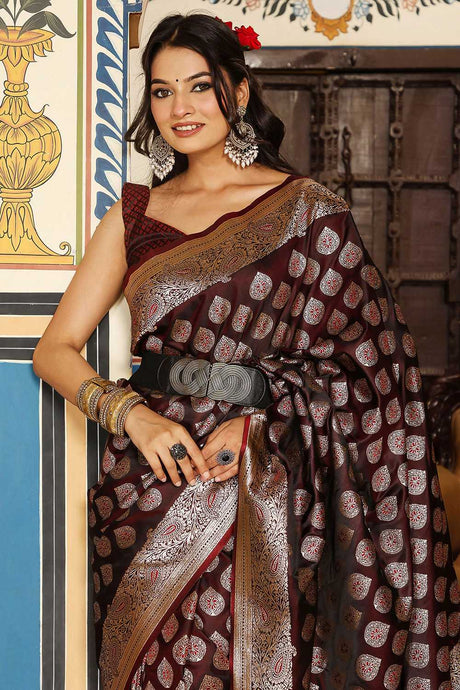Sale price $176.00 USD Regular price $220.00Unit price /UnavailableBrown Floral Embroidered Tissue Saree