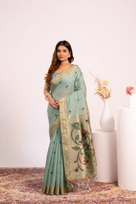 Green Digital Printed Silk Saree