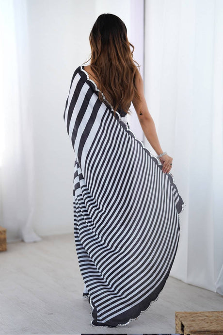 Black Digital Printed Silk Saree