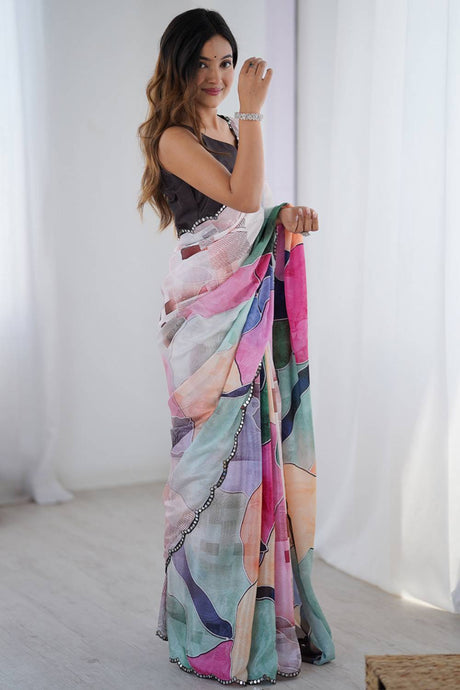 Violet Digital Printed Silk Saree