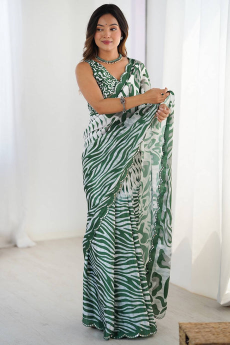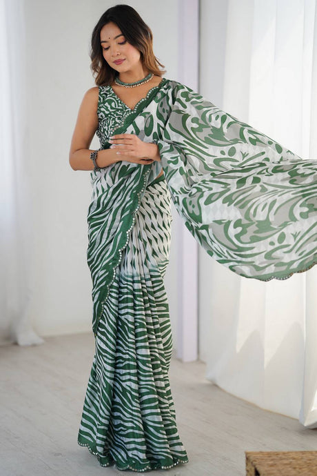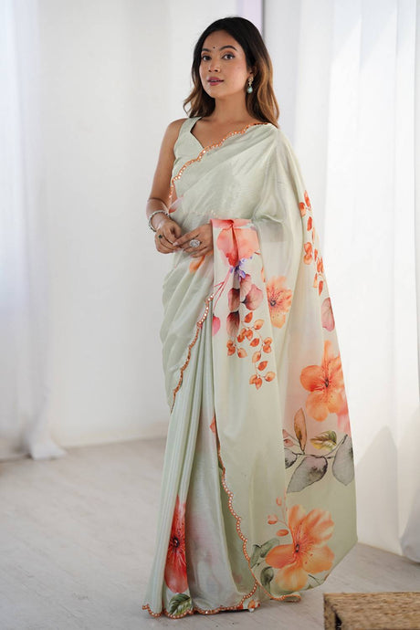 Olive Green Floral Printed Art Silk Saree