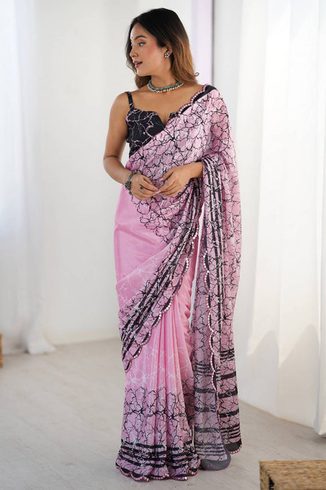 Light Pink Printed Art Silk Saree