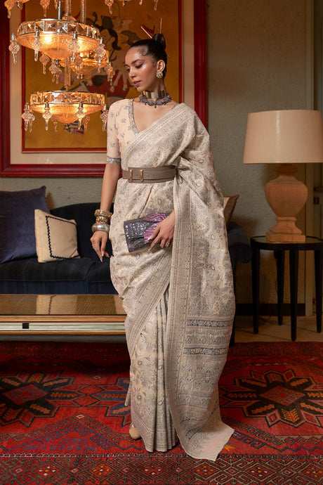 Sale price $101.00 USD Regular price $121.00Unit price /UnavailableKafreen Cream Modal Woven Saree