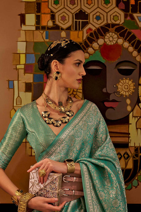 Kaarsi Silk Mint Woven Handloom Saree