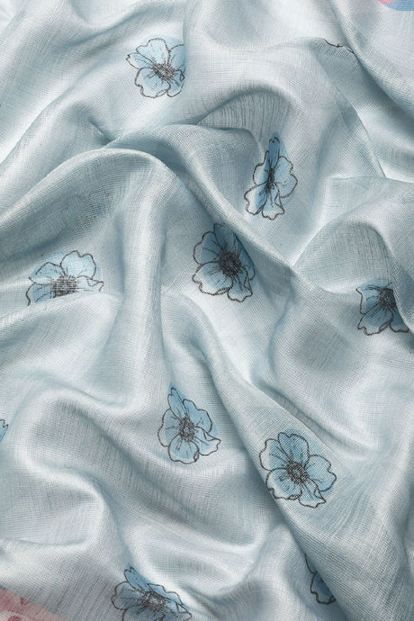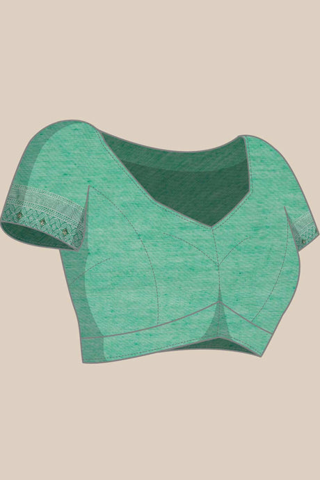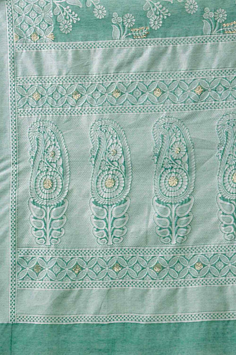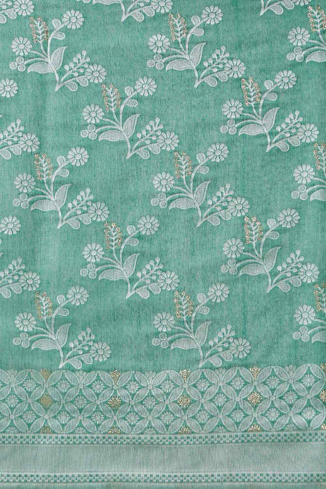 Women's Teal Cotton Silk Floral Saree