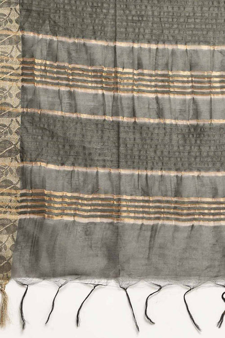 Dark Grey Resham Embroidery Saree