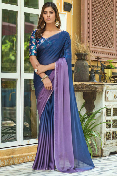 Blue Chiffon Sequins Swarovski Embroidery Work Saree