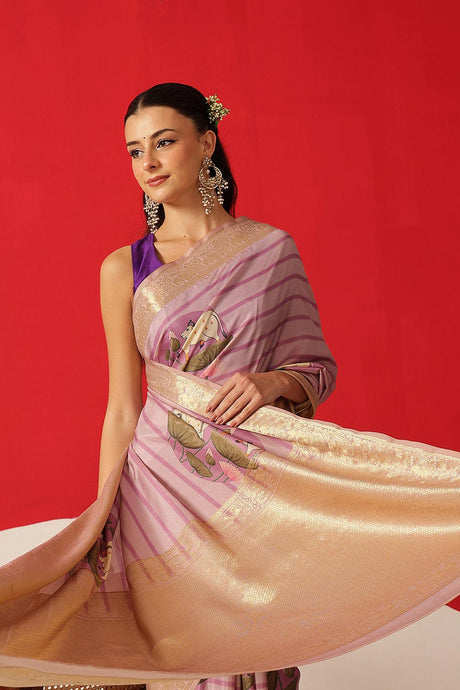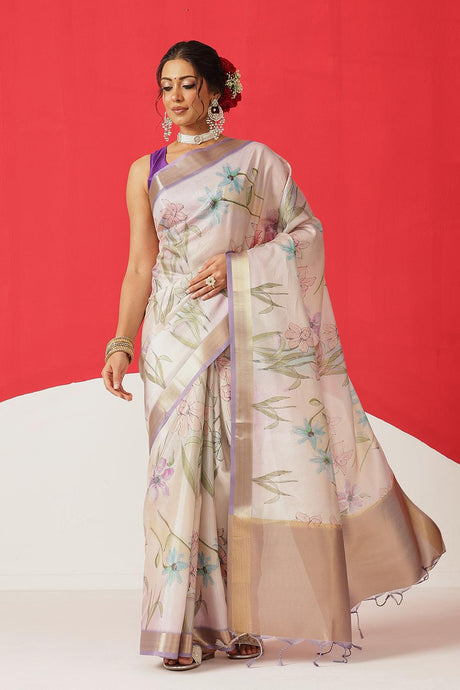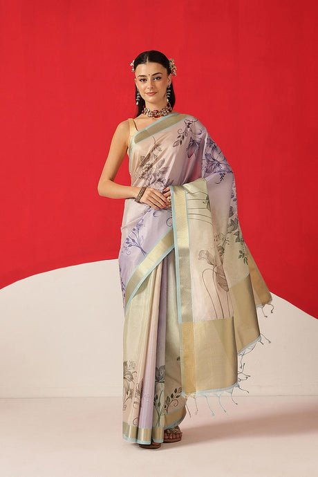 Lavender Printed Silk Saree (SZ-DGZARA-LV-3069)