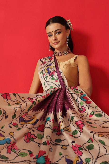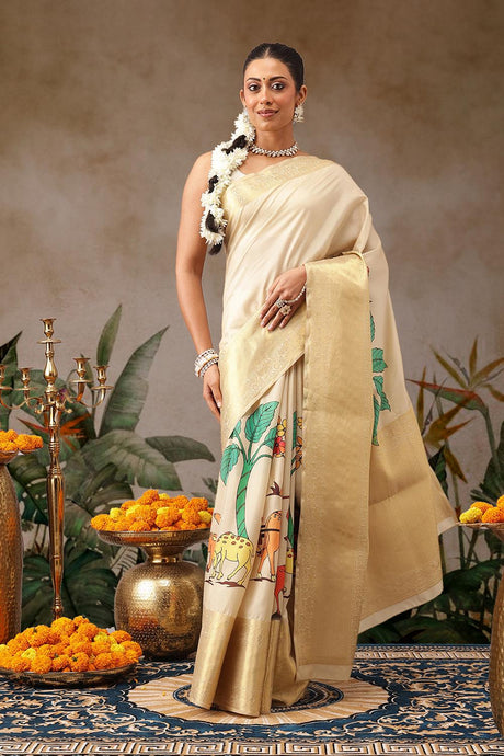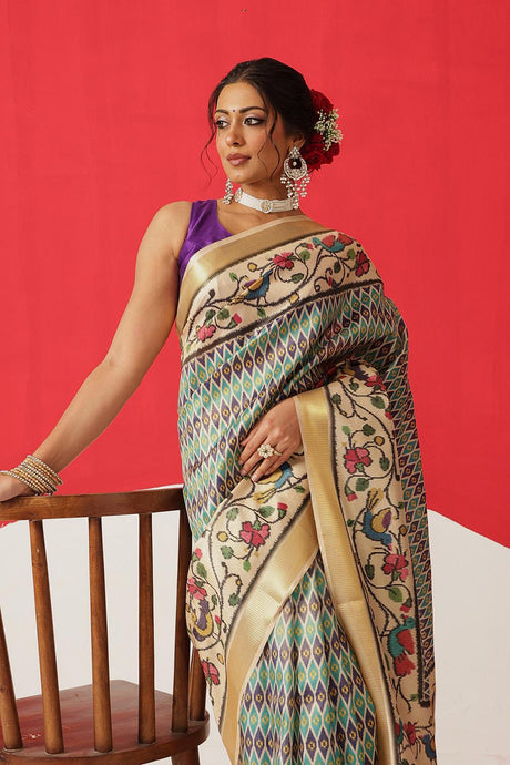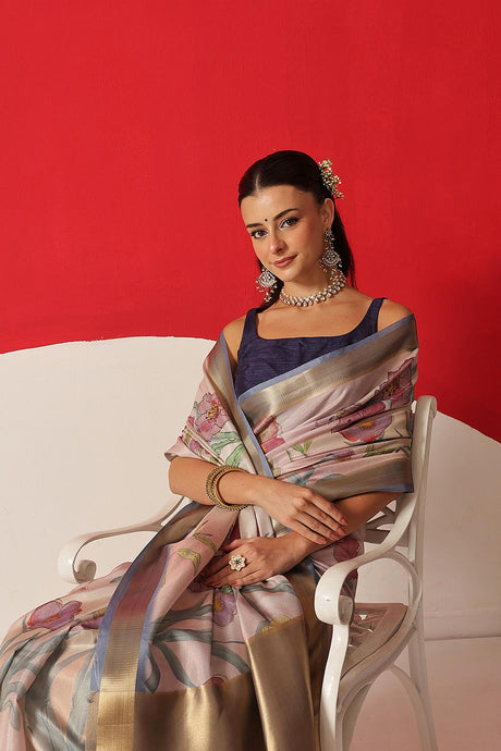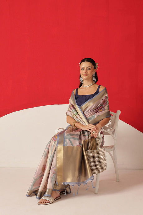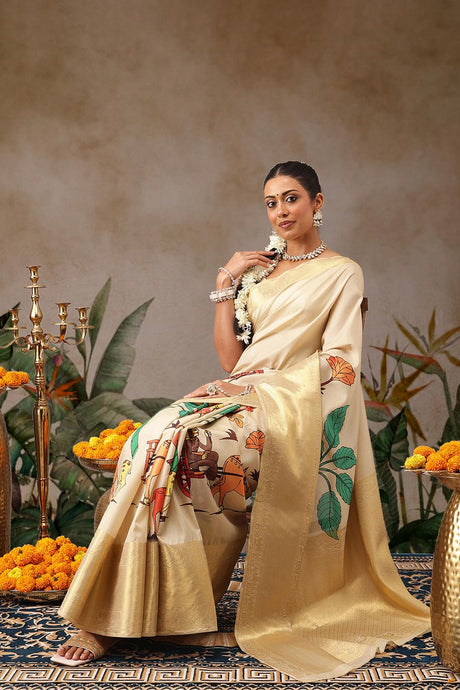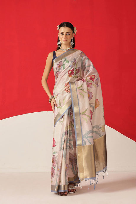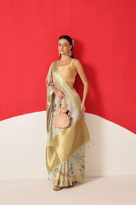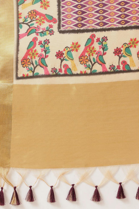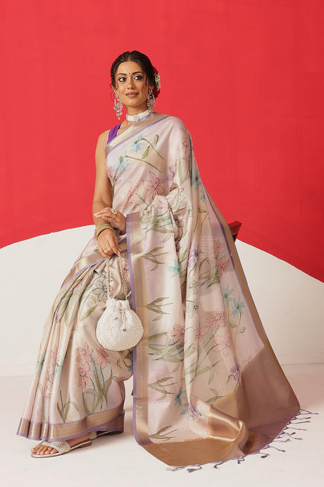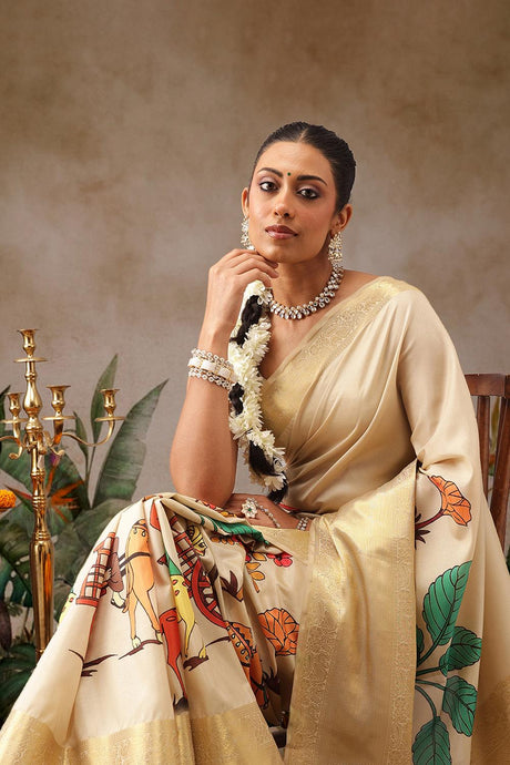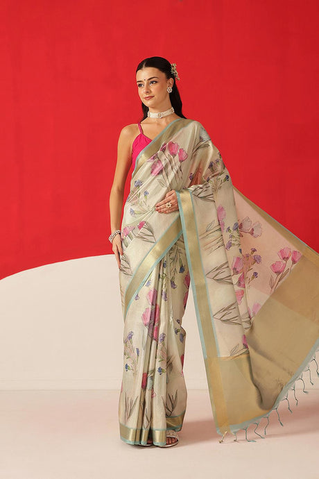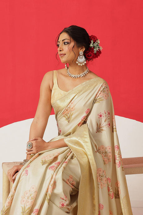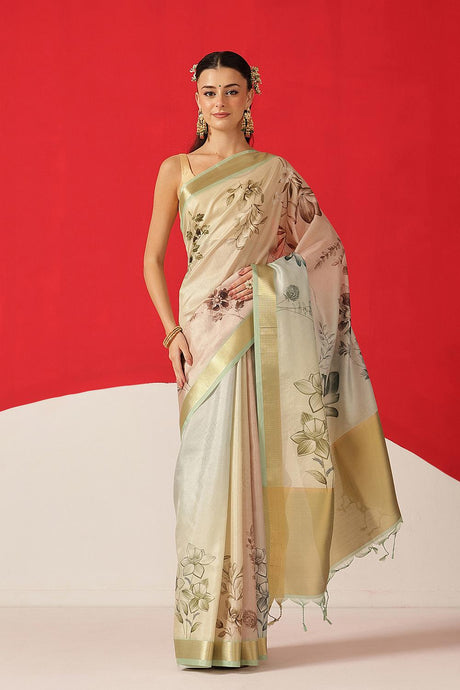 Beige Printed Silk Saree (SZ-DGZARA-BE-3068)