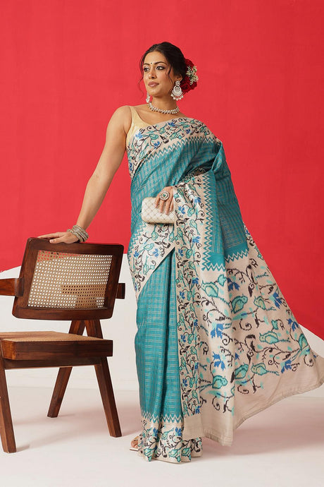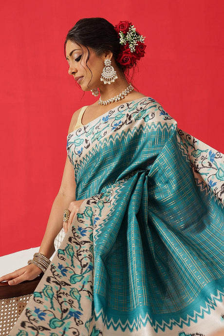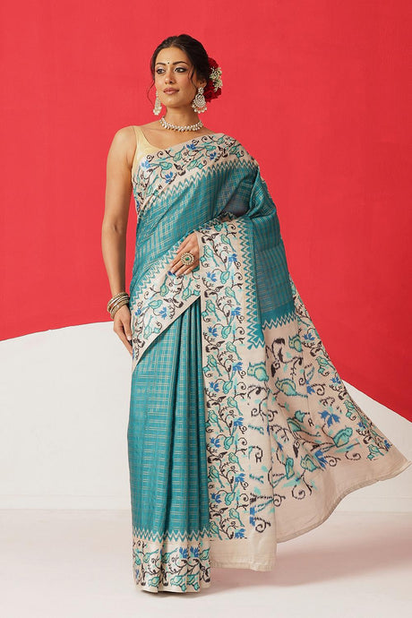 Turquoise Printed Silk Saree (SZ-DGMAYA-2549)