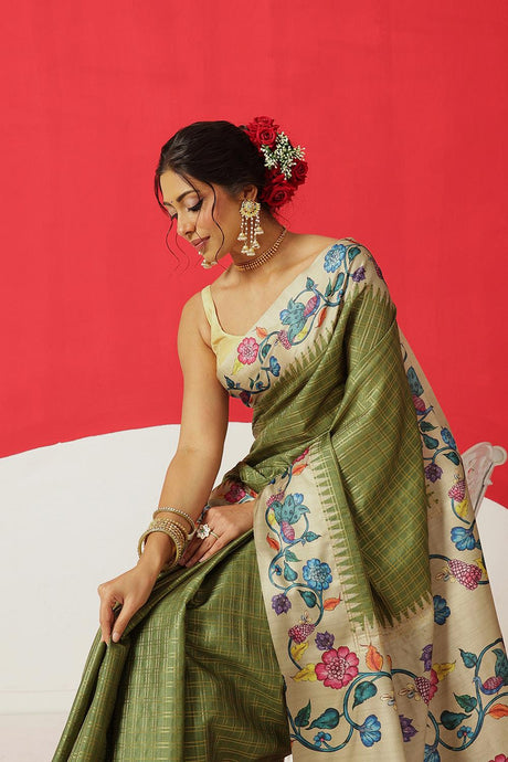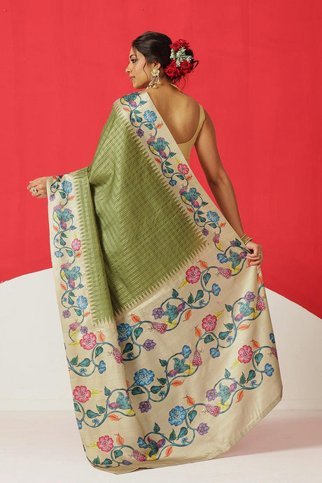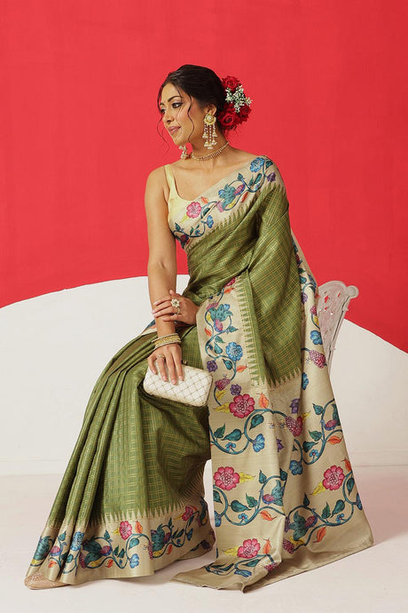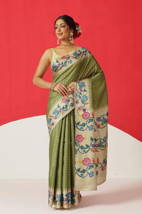Olive Green Printed Silk Saree (SZ-DGMAYA-2554)