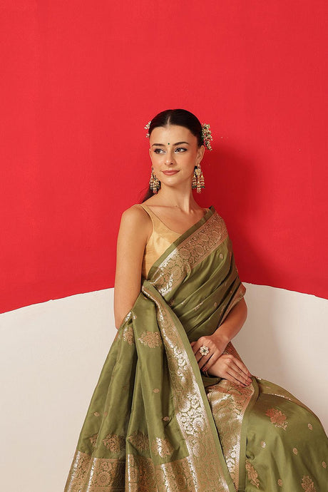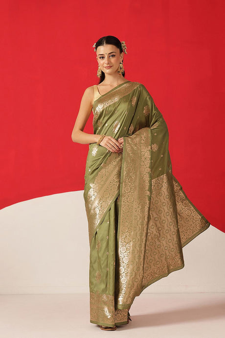Olive Green Woven Silk Saree (SZ-NOOR-OL-3075)