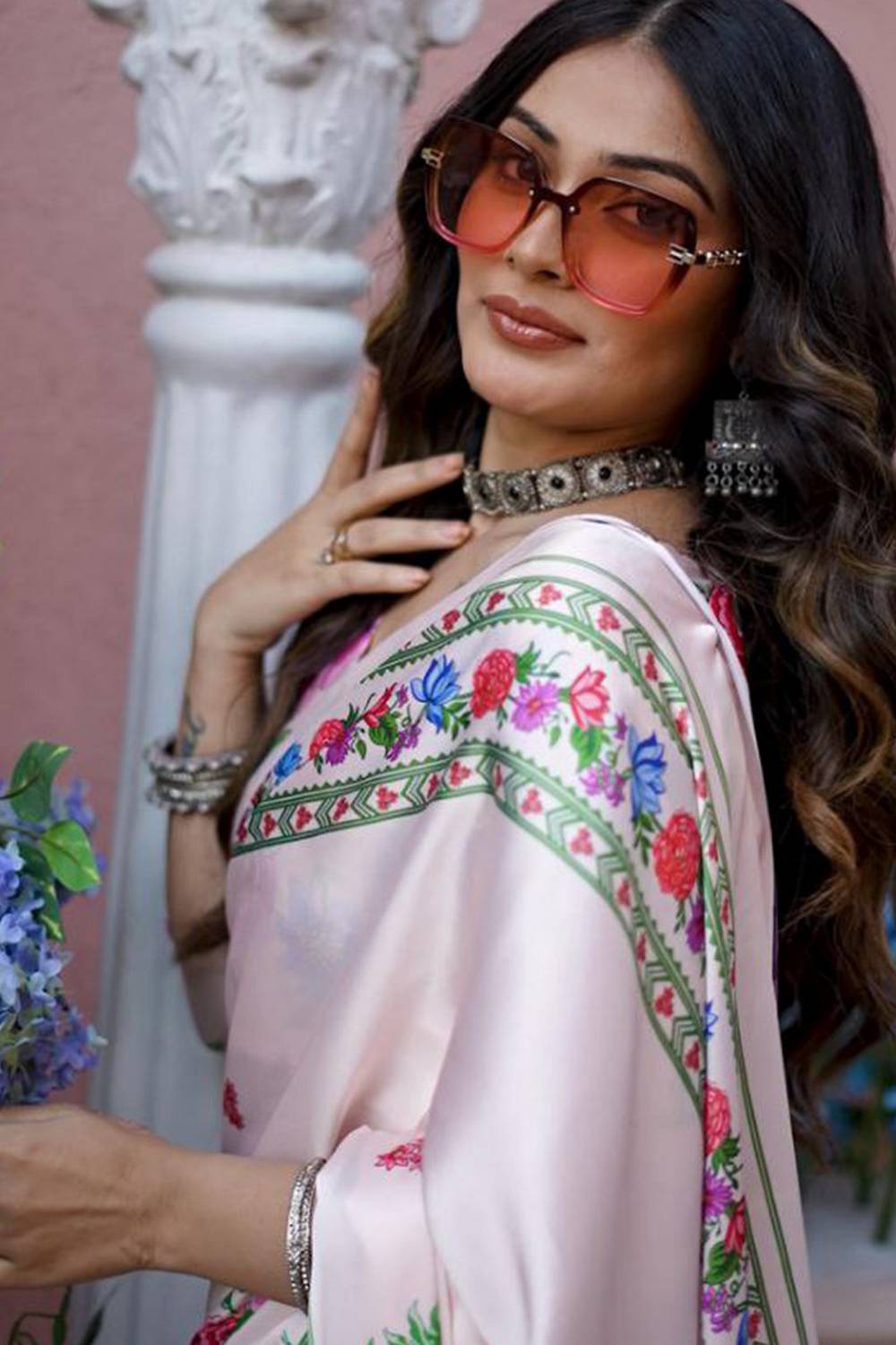 Elevate your wardrobe with our exquisite Saree a masterpiece crafted to add timeless elegance to your style. Made from Satin this saree offers a perfect mix of comfort and sophistication. Adorned with Floral Printed it showcases intricate craftsmanship that speaks volumes of tradition and artistry. Perfect for Casual this saree is a versatile addition to your collection, ensuring you stand out effortlessly. Pair it with elegant Jewelry, for a glamorous look. Add Clutches or Potli Bags and complete the ensemble with Wedges & Heels , making it a perfect choice for any event. Make a statement and embrace the elegance of Saree Today