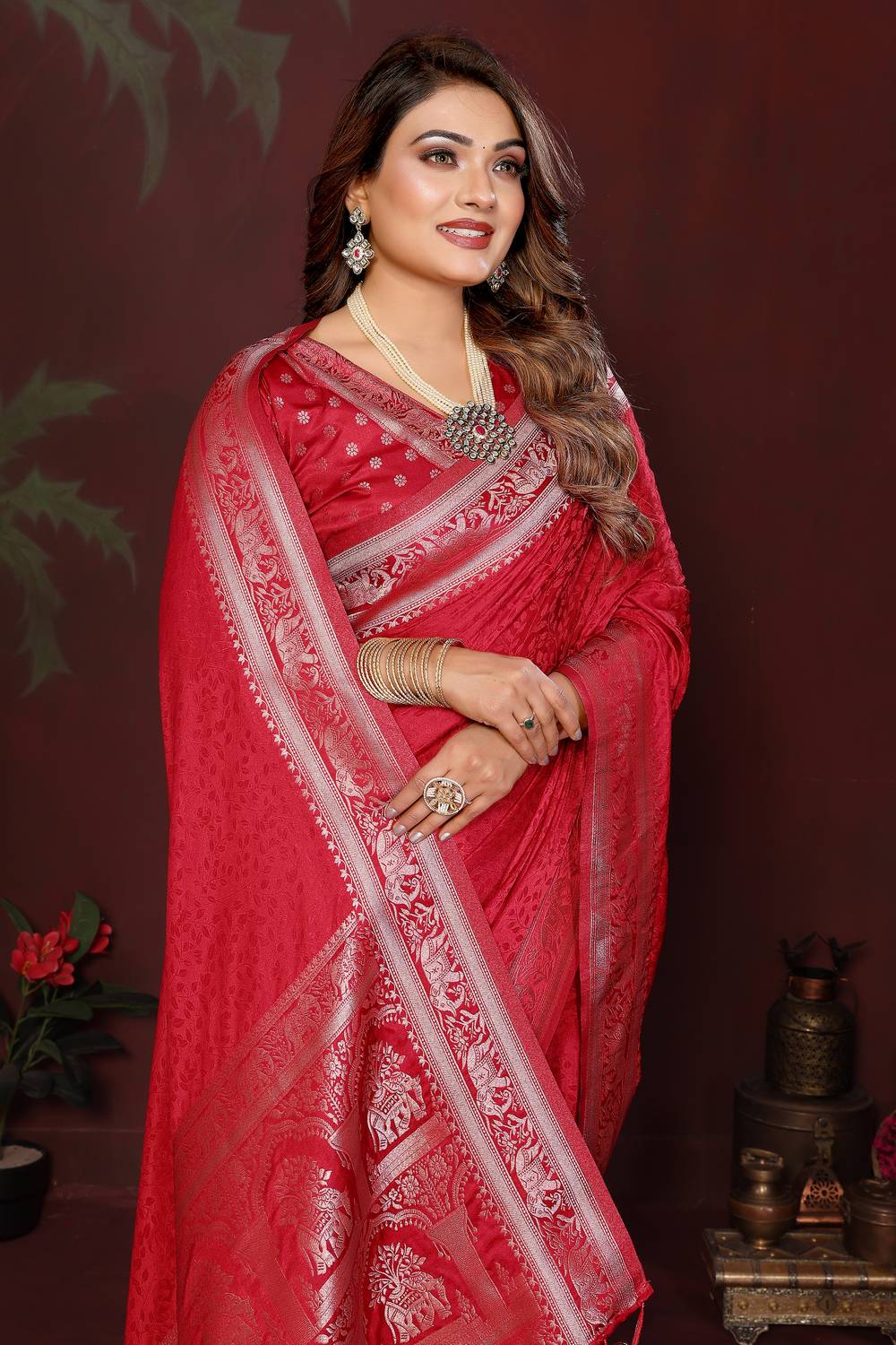 Red Woven Satin Saree