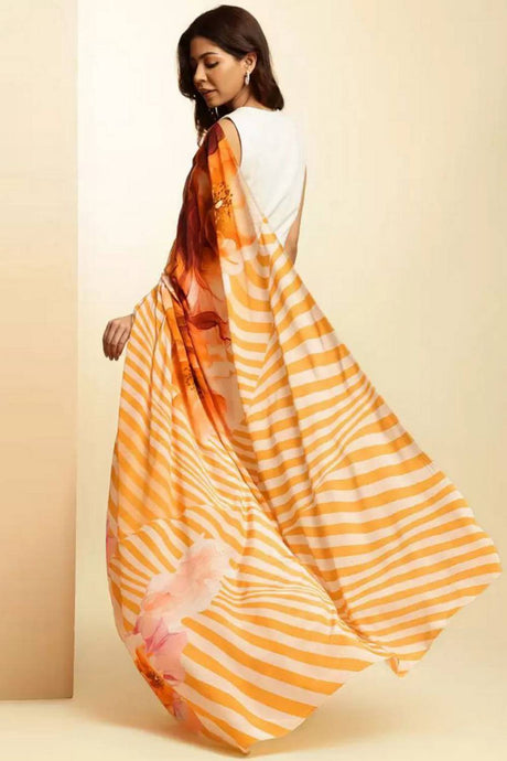 Sale price $53.00 USD Regular price $58.00Unit price /UnavailableCream Floral Printed Satin Saree