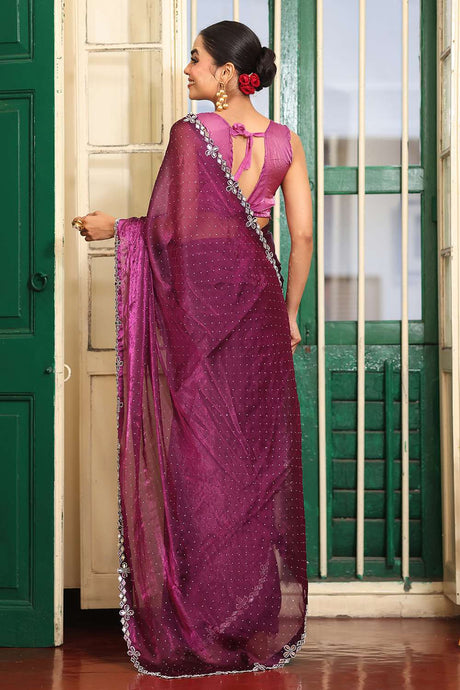 Wine Burfi Silk Saree With Lycra Sequins Unstitch Blouse