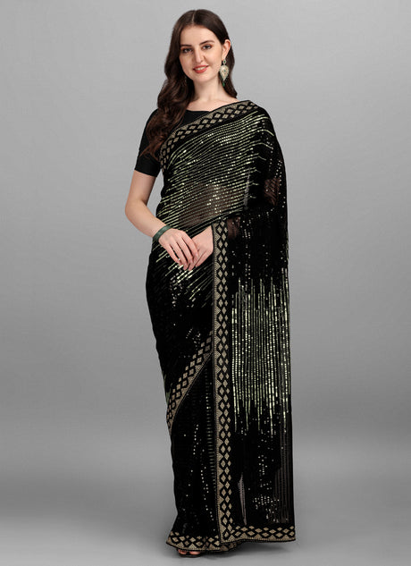Sale price $51.00 USD Regular price $56.00Unit price /Unavailable Georgette Sequins Embroidery Saree In Pastel Green