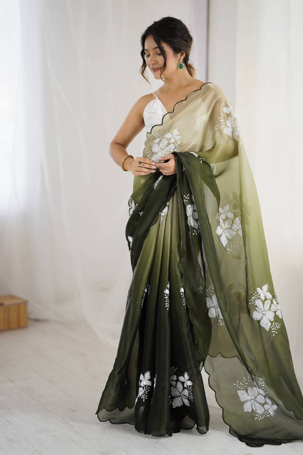 Mehendi Sequin with Embroidered Saree