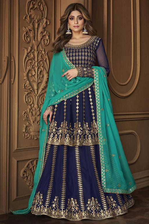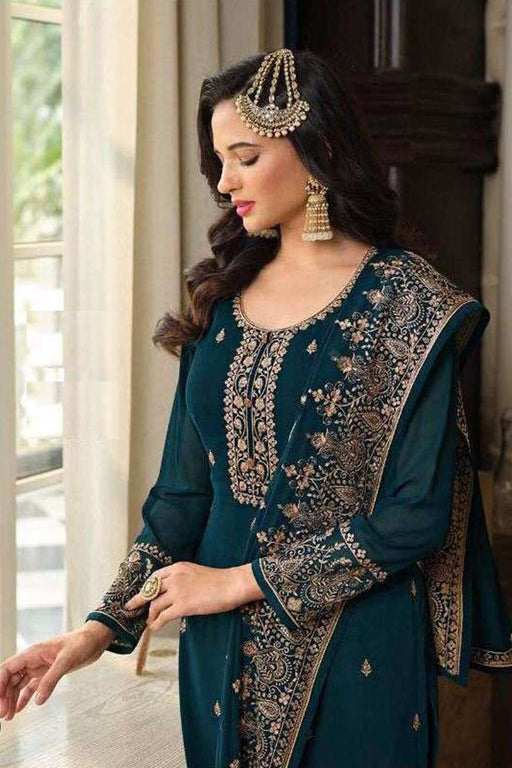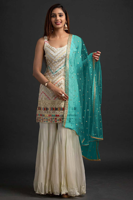 Pista Faux Georgette Mirror And Embroidery Work Sharara Set