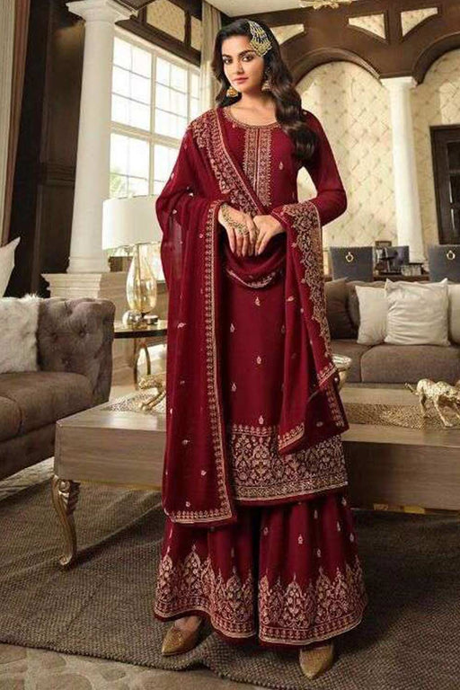 Purple Embellished With Embroidered Georgette Sharara Suit Set