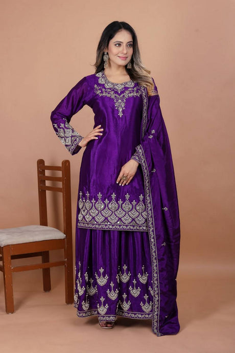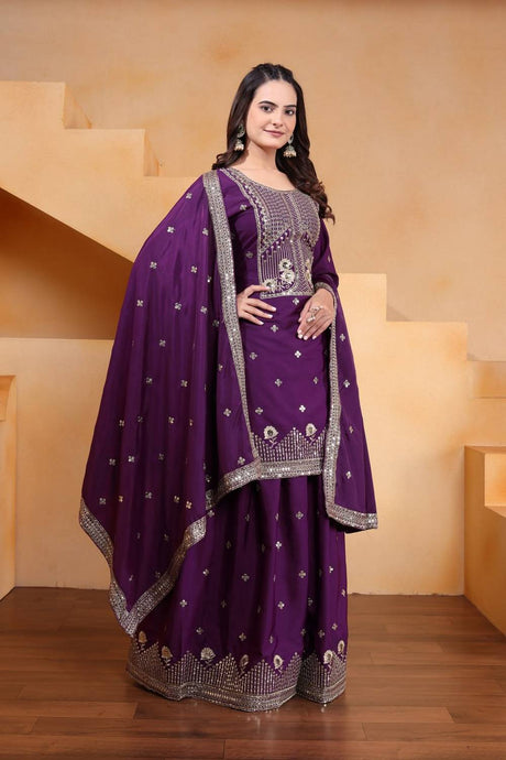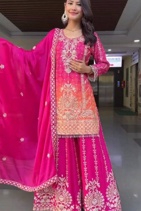 Pink Sequin with Embroidered Silk Sharara Suit Set