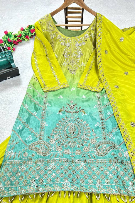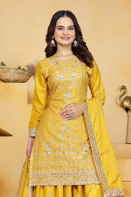Yellow Sequin with Embroidered Silk Sharara Suits