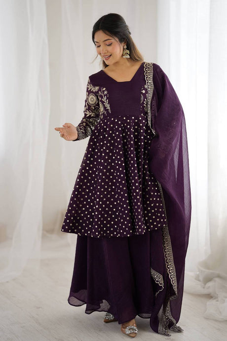 Turquoise Sequin with Embroidered Silk Sharara Suits