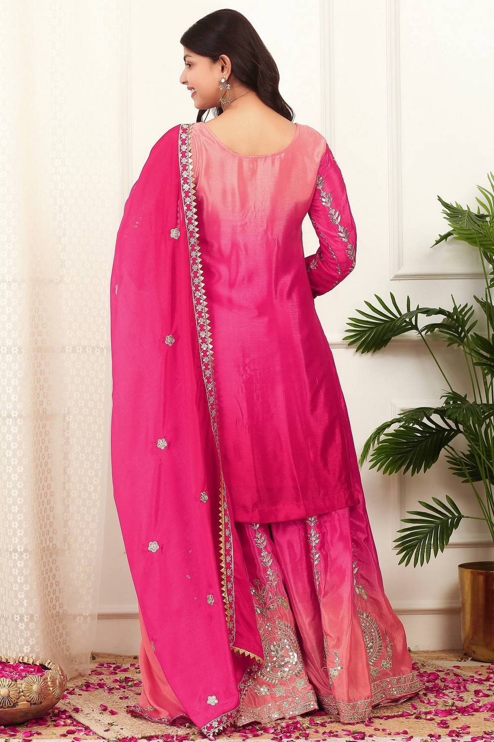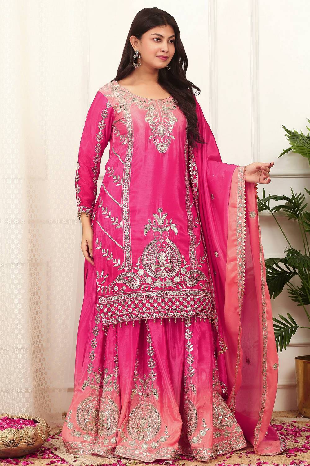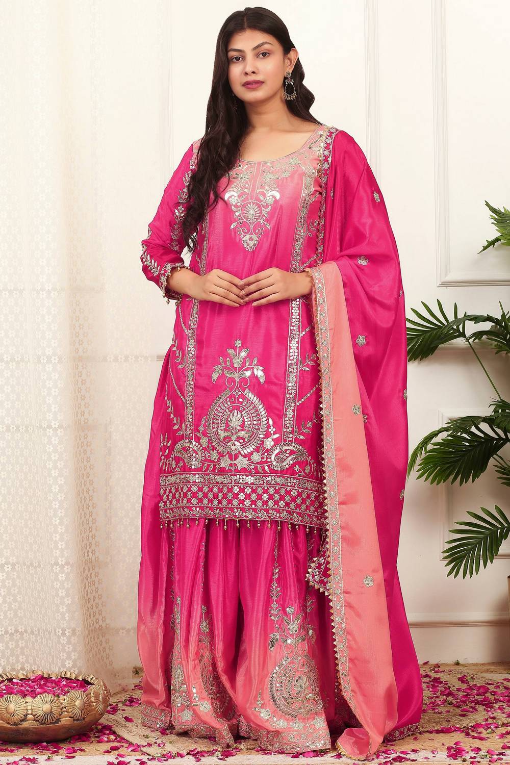 Step into effortless style with our Sharara Suits crafted for the modern woman who cherishes tradition. Made from soft Silk it keeps you comfortable all day long. The Sequin with Embroidered design lends a touch of sophistication to your outfit. Perfect for Festive, Party, Sangeet this is a must-have for versatile styling options. Style it with minimalistic accessories and flats for a casual look or jewelry and heels for special events