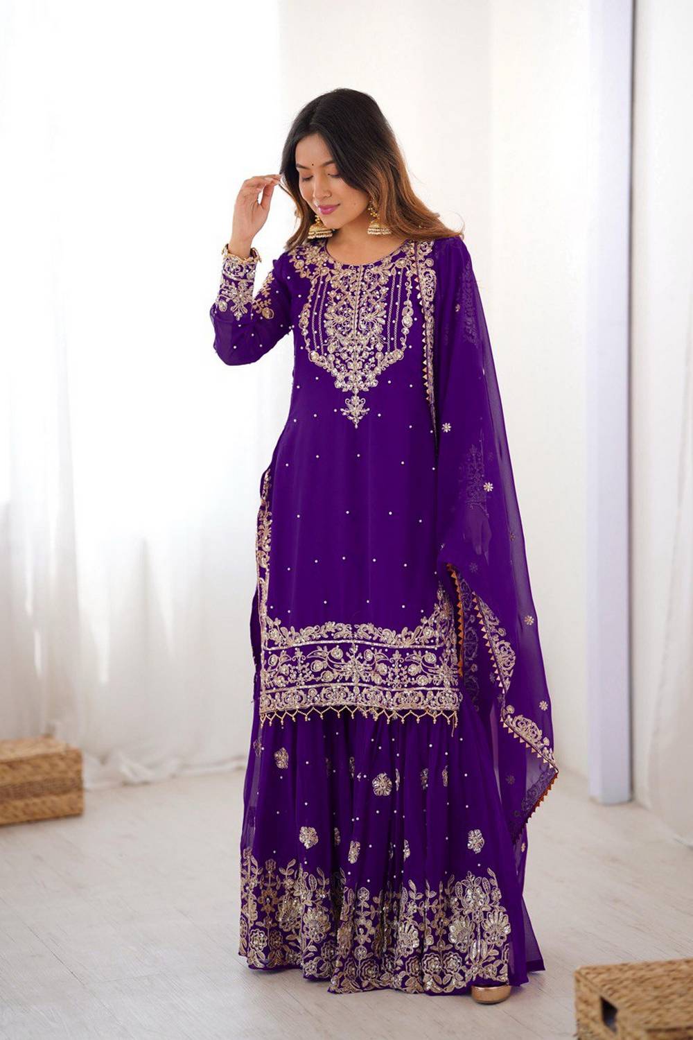 Violet Sequin with Embroidered Georgette Sharara Suits